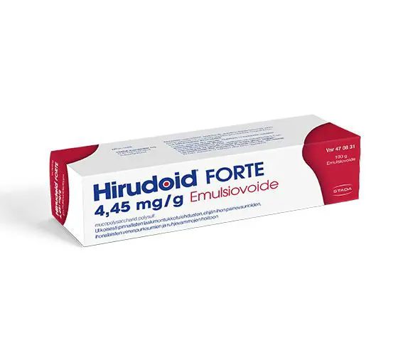 Hirudoid forte® on saatavana sekä emulsiovoiteena että geelinä pinnallisen laskimotukkotulehduksen sekä mustelmien ja ruhjevammojen hoitoon.